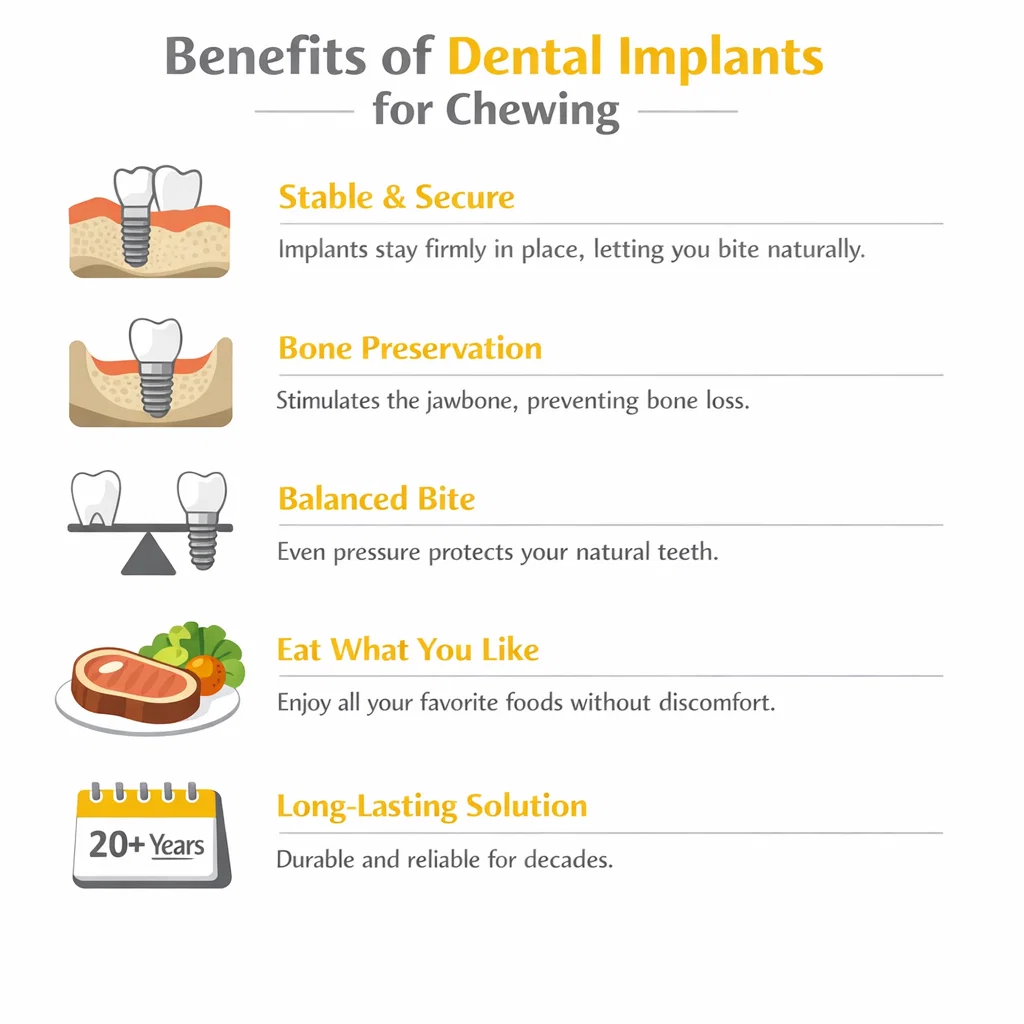 While dentures and bridges are common alternatives, dental implants offer unique advantages for natural chewing: