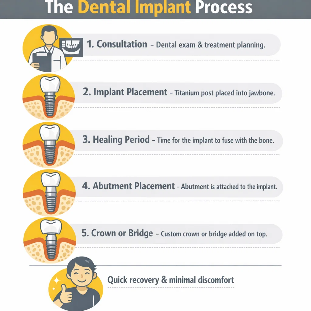 1. Consultation – Your dentist will examine your bone structure, oral health, and overall treatment goals.